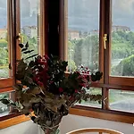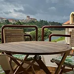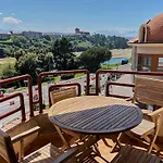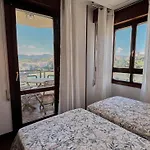 山の景色を望むアパ-トメントで,バルコニ-,ソファ と衛星放送チャンネルの薄型テレビが備わります.